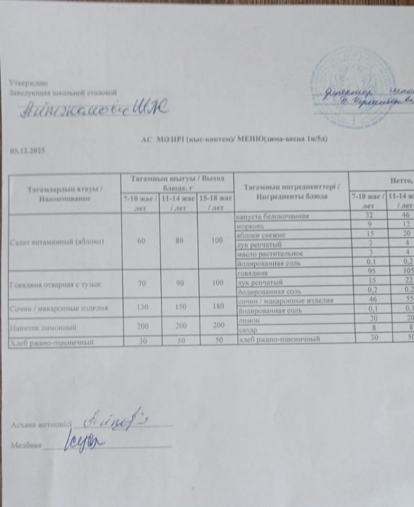 05.12.2025 ас мәзірі