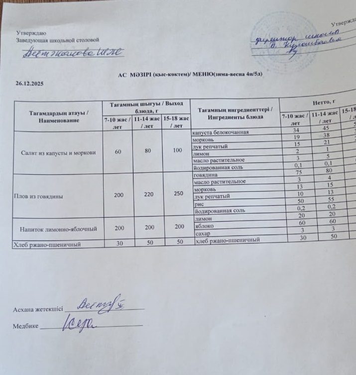 26.12.2025 ас мәзірі
