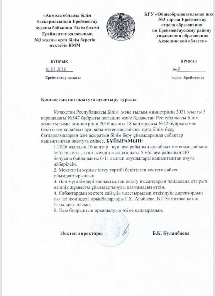 Қашықтықтан оқыту туралы бұйрық